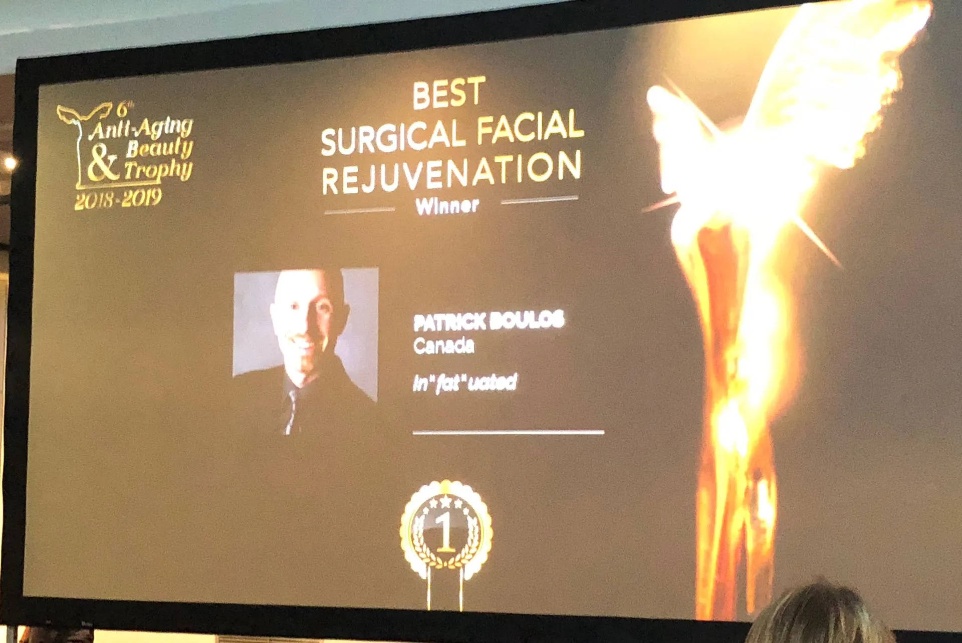 Dr Boulos a également été récipiendaire du prix: ”Anti-Aging & Beauty Trophy for Best Surgical Facial Rejuvenation 2018” du World Society of Interdisciplinary Aesthetic & Anti-Aging Medicine à Monaco pour la meilleure technique de rajeunissement facial chirurgical.