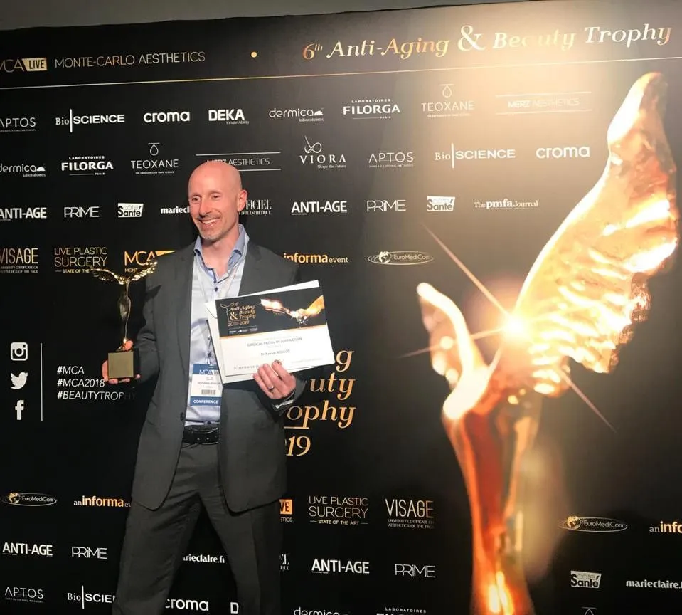 Trophée pour la meilleure technique de rajeunissement facial chirurgical - World Society of Interdisciplinary Aesthetic & Anti-Aging Medicine à Monaco